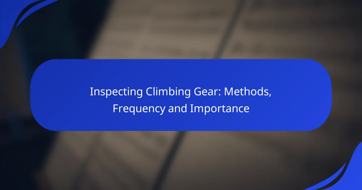 Inspecting climbing gear is essential for ensuring safety and optimal performance during climbs. By conducting both visual checks and functional tests, climbers can identify wear and tear that may compromise gear reliability. It is recommended to inspect personal gear before each use and perform a thorough examination at least once a year to prevent potential accidents.